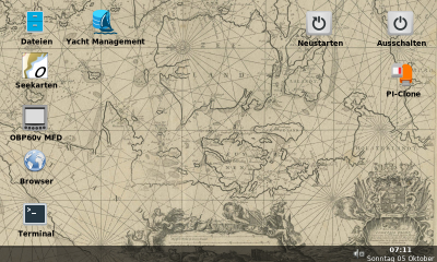Multifunktionsdisplay bzw. Bordcomputer auf Raspberry-Basis. Inspiriert durch das OBP60. Eine virtuelle Version des OBP60, das OBP60v ist dazu gedacht auf diesem Gerät zu laufen. Das Gerät ist für die Montage unter Deck gedacht, für „draußen“ kann ein sonnenlichttaugliches und wasserfestes Tablet mit VNC angebunden werden.