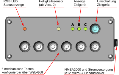 - M12 Micro-C-Anschluß: Hier wird das NMEA2000-Kabel angeschlossen
